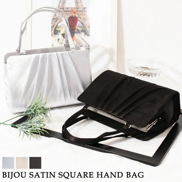2way ビジューサテンハンドバッグ サイズ 横 高さ マチ ハンドル長さ FREE 26cm 17cm 9cm 36cm カラー シルバー / シャンパン / ブラック 素材 ポリエステル 重さ 490g 備考 メイン収納ガマ口式開閉 メインスペース内:オープンポケット×2 ショルダーチェーン取り外し可能(122cm) 生産国 中国 コメント シンプルなミニスクエアバッグ。